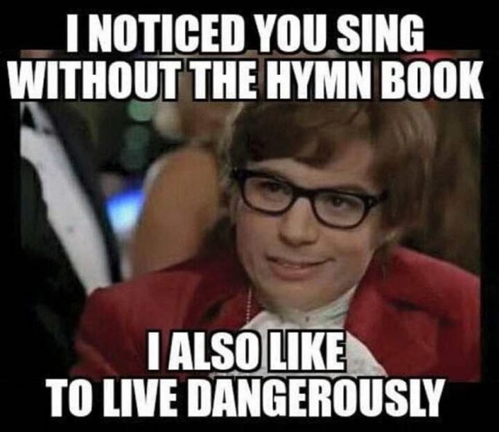 “I noticed you sing without the hymn book. I also like to live dangerously.”