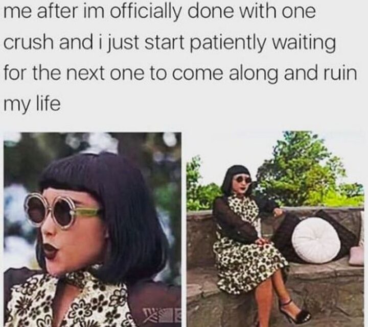 “Me after I’m officially done with one crush and I just start patiently waiting for the next one to come along and ruin my life.”