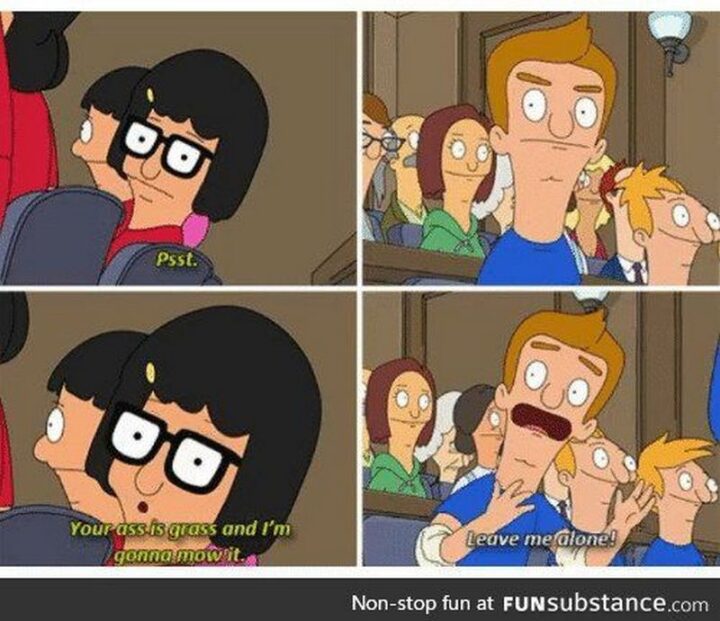 “Psst. Your ass is grass and I’m gonna mow it. Leave me alone!”