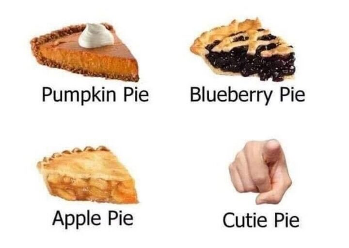 “Pumpkin pie. Blueberry pie. Apple pie. Cutie pie.”