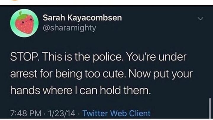 “Stop. This is the police. You’re under arrest for being too cute. Now put your hands where I can hold them.”