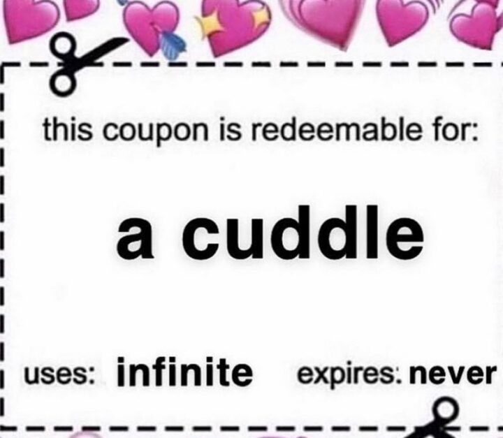 “This coupon is redeemable for a cuddle. Uses Infinite. Expires: Never.”