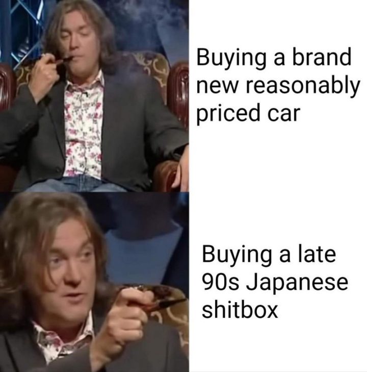“Buying a brand new reasonably priced car VS Buying a late 90s Japanese $#!tbox.”