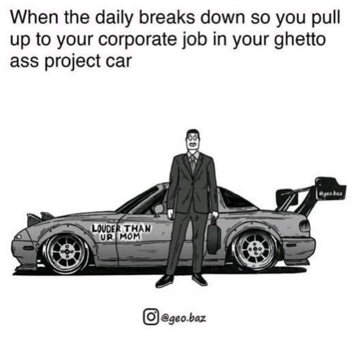 “When the daily breaks down so you pull up to your corporate job in your ghetto ass project car.”