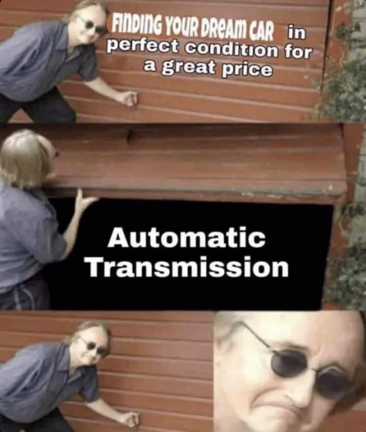 “Finding your dream car in perfect condition for a great price but finding out it’s an automatic transmission.”