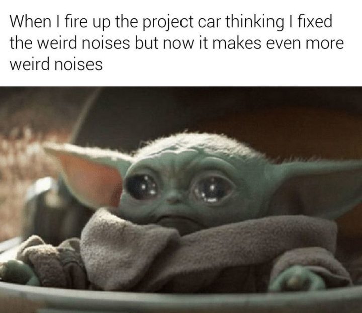 “When I fire up the project car thinking I fixed the weird noises but now it makes even more weird noises.”