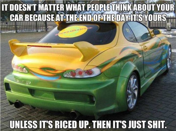 “It doesn’t matter what people think about your car because, at the end of the day, it’s yours. Unless it’s riced up. Then it’s just $#!t.”