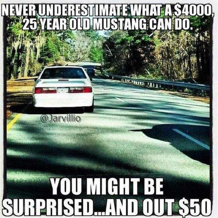 “Never underestimate what a $4000, 25-year-old Mustang can do. You might be surprised…and how $50.”