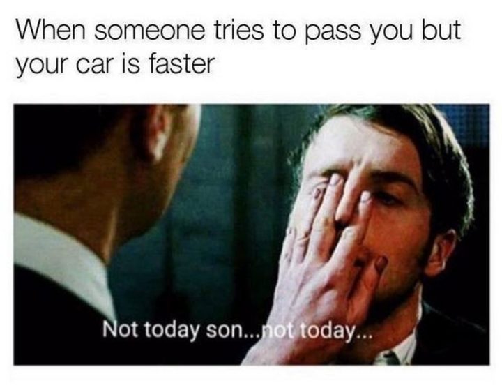 “When someone tries to pass you but your car is faster: Not today son…Not today…”