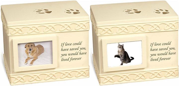 If you choose to cremate your pet, there are a variety of pet urns available to cherish and honor your pet forever. There is every style imaginable from traditional urns to personalized urns with a photo or even the name of your pet.