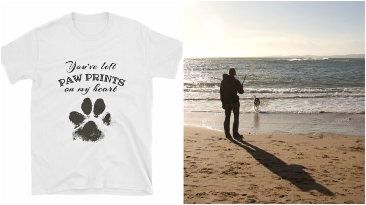 Pet memorial gifts such as this T-shirt that state “You’ve left paw prints on my heart” is just adorable. Check it out.