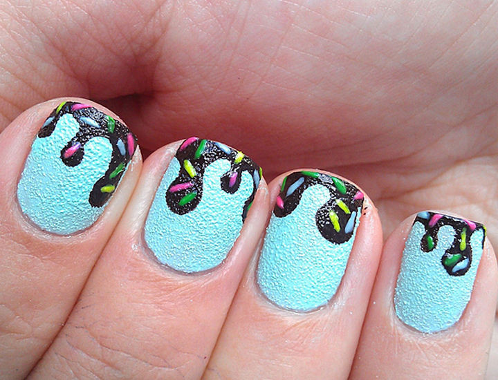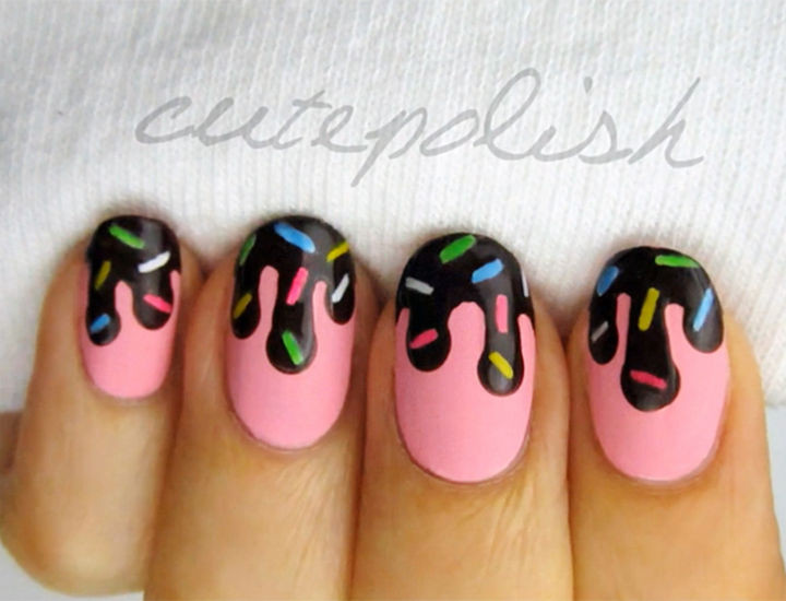 8) Dripping chocolate ice cream nails with sprinkles.