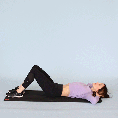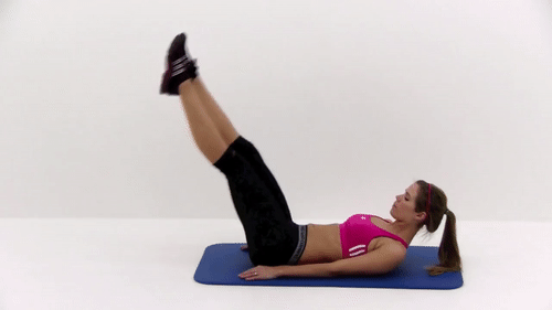 Target your abs with this toe tap ab workout that will also get your heart pumping. First, lie on your back then raise your legs to a 90-degree angle with your arms either placed vertically parallel to your legs or stretch out behind you. Then, start the motion by lifting your torso off the floor and reaching your toes with your fingertips. Finally, relax and return to the start position. Perform the ab workout routine for 20 reps.