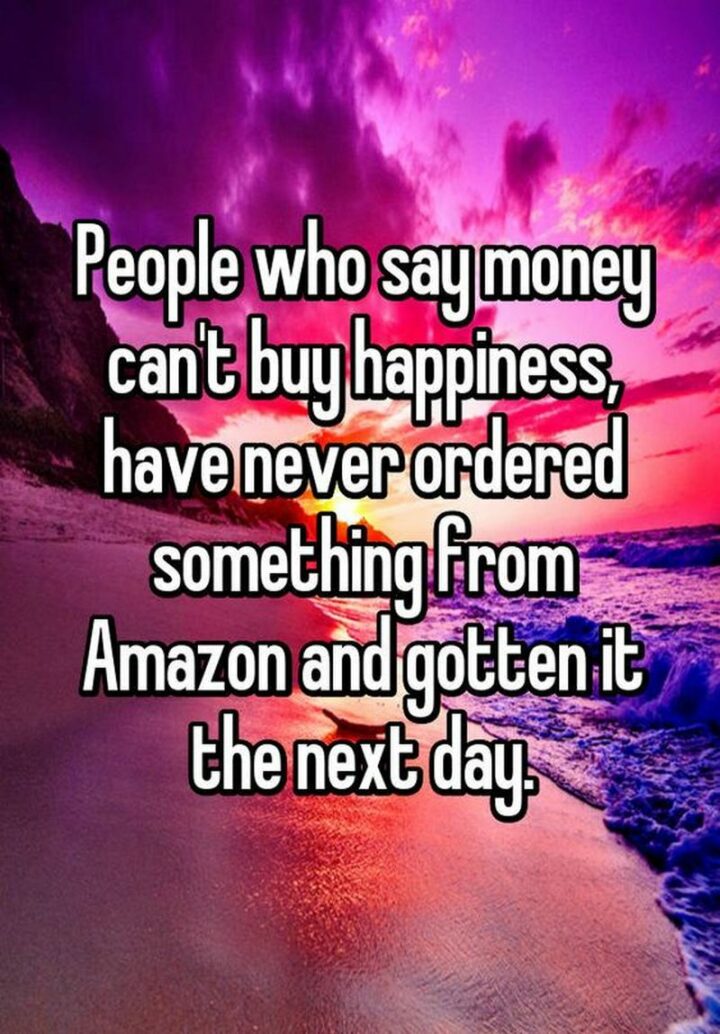 “People who say money can’t buy happiness have never ordered something from Amazon and gotten it the next day.”