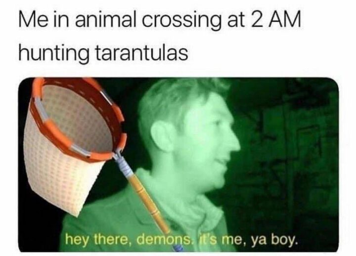 4) “Me in Animal Crossing at 2 am hunting tarantulas: Hey there, demons, it’s me, ya boy.”