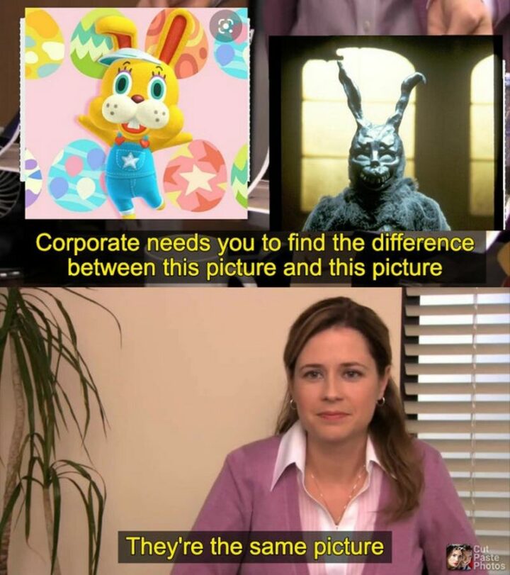 10) “Corporate needs you to find the difference between this picture and this picture. They’re the same picture.”