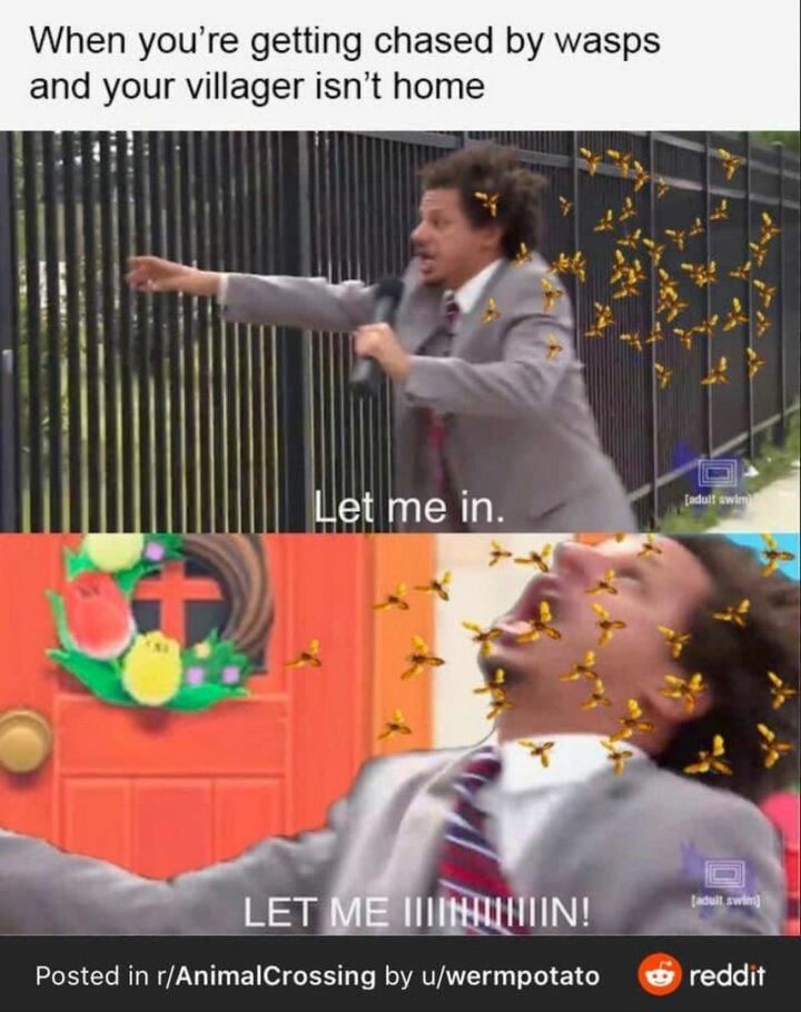 18) “When you’re getting chased by wasps and your villager isn’t home: Let me in. Let me in!”