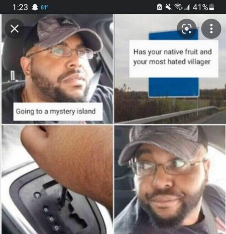 20) “Going to a mystery island. Has your native fruit and your most hated villager.”