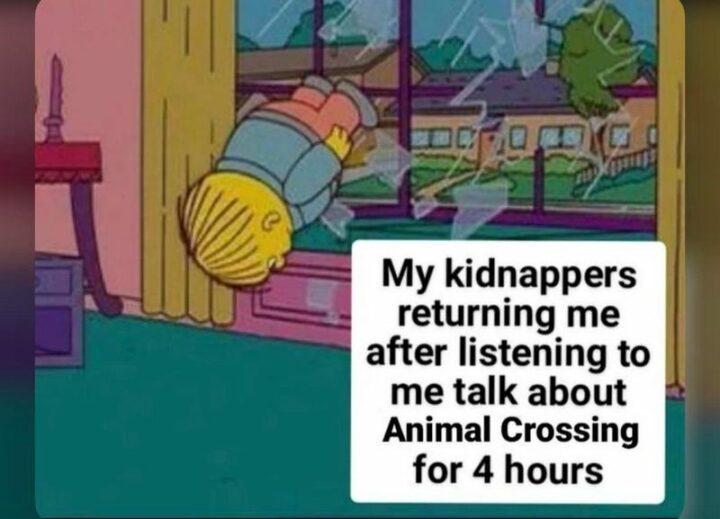 30) “My kidnappers returning me after listening to me talk about Animal Crossing for 4 hours.”