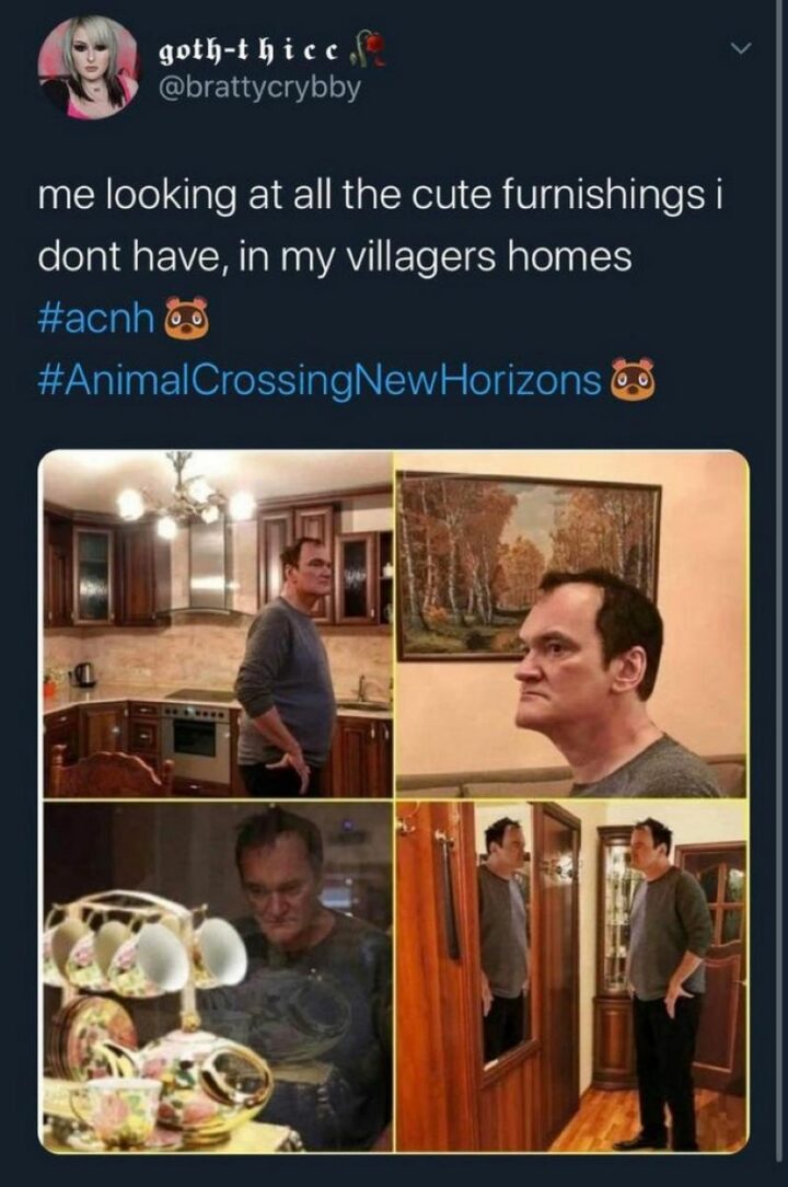 32) “Me looking at all the cute furnishings I don’t have, in my villager’s homes.”