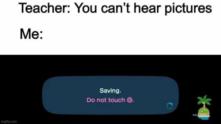 52) “Teacher: You can’t hear pictures. Me: Saving. Do not touch.”