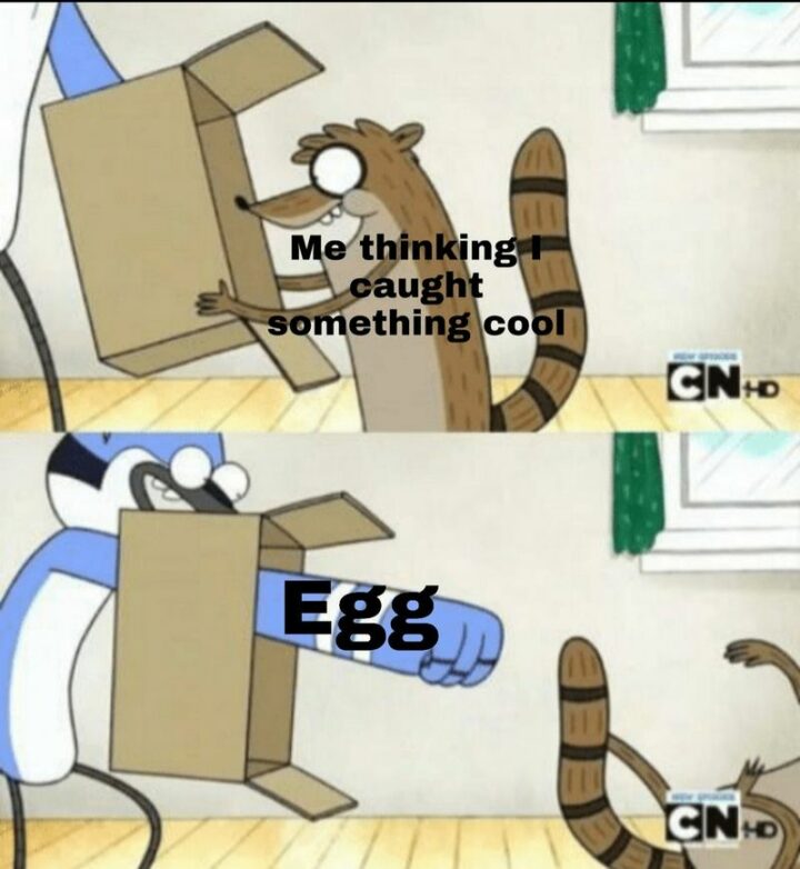54) “Me thinking I caught something cool. Egg.”