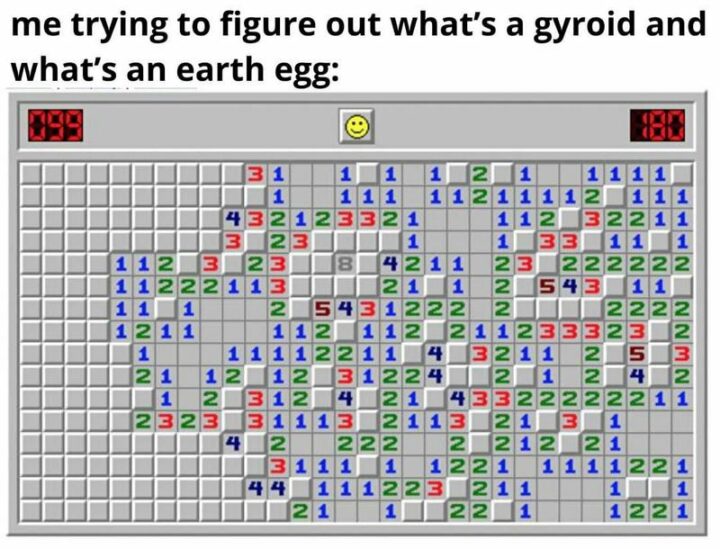 57) “Me trying to figure out what’s a gyroid and what’s an earth egg.”