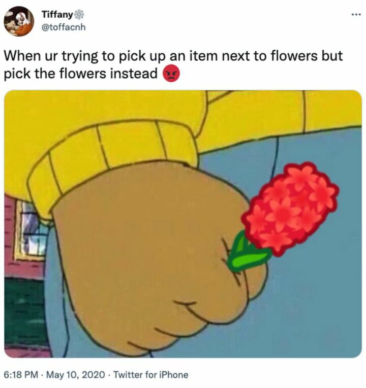 59) “When ur trying to pick up an item next to flowers but pick the flowers instead.”