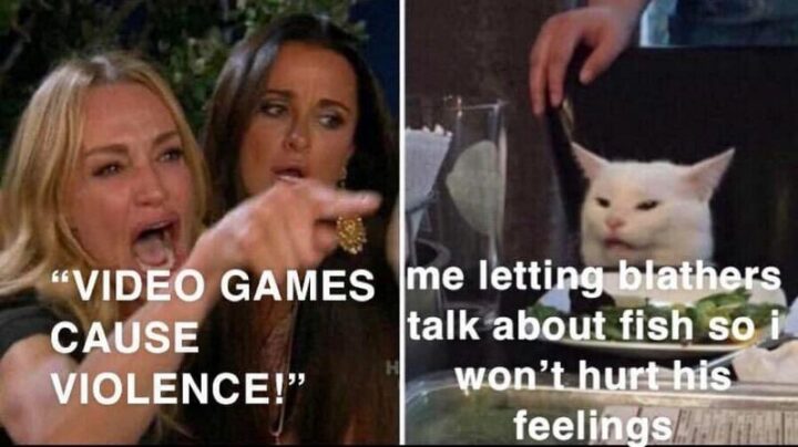 60) “Video games cause violence! Me letting Blathers talk about fish so I won’t hurt his feelings.”