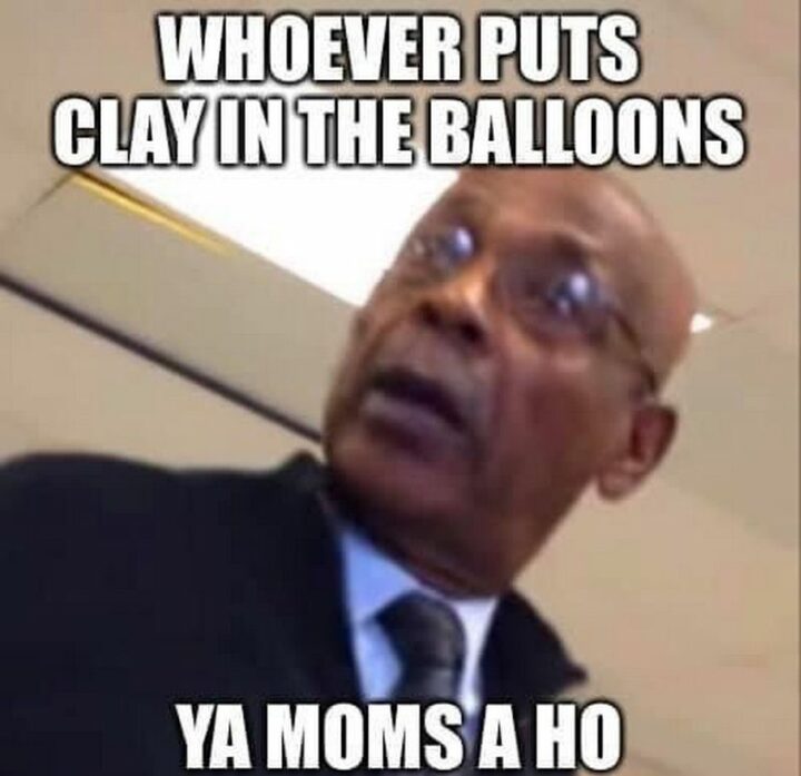 68) “Whoever puts clay in the balloons, ya moms a ho.”