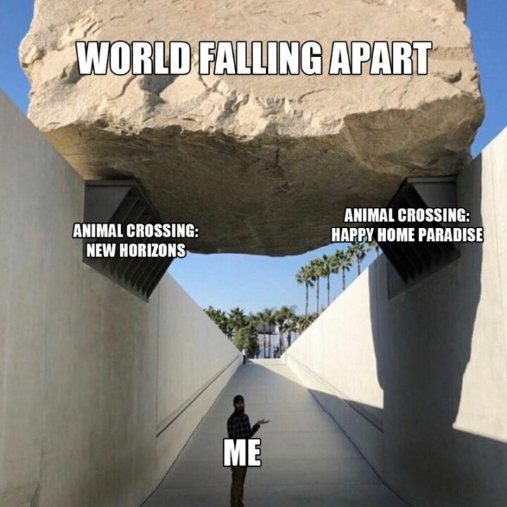 70) “World falling apart. Animal Crossing: New Horizons. Animal Crossing: Happy Home Paradise. Me.”