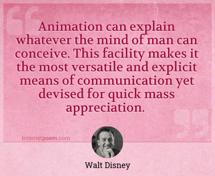 4) “Animation can explain whatever the mind of man can conceive. This facility makes it the most versatile and explicit means of communication yet devised for quick mass appreciation.” – Walt Disney