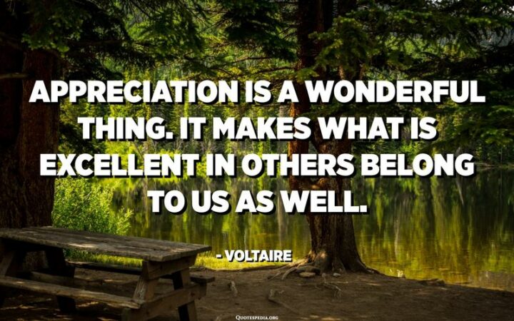 5) “Appreciation is a wonderful thing. It makes what is excellent in others belong to us as well.” – Voltaire