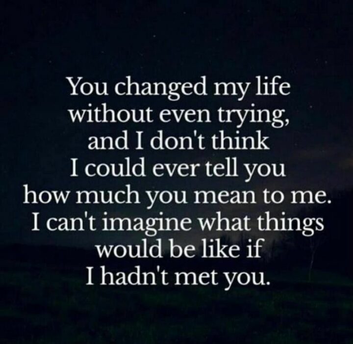 9) “You changed my life without even trying, and I don’t think I could ever tell you how much you mean to me. I can’t imagine what things would be like if I hadn’t met you.” – Steve Maraboli