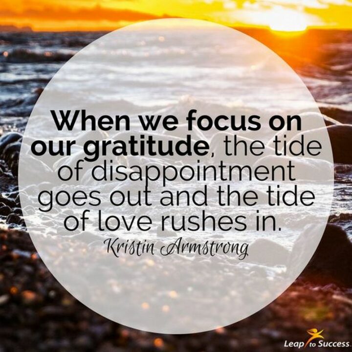 14) “When we focus on our gratitude, the tide of disappointment goes out and the tide of love rushes in.” – Kristin Armstrong