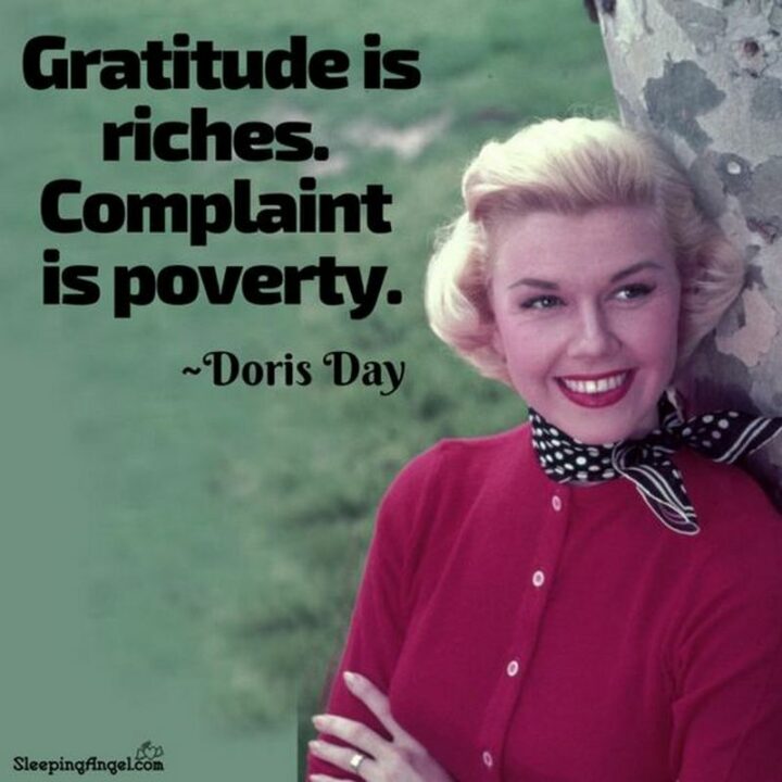 21) “Gratitude is riches. Complain is poverty.” – Doris Day