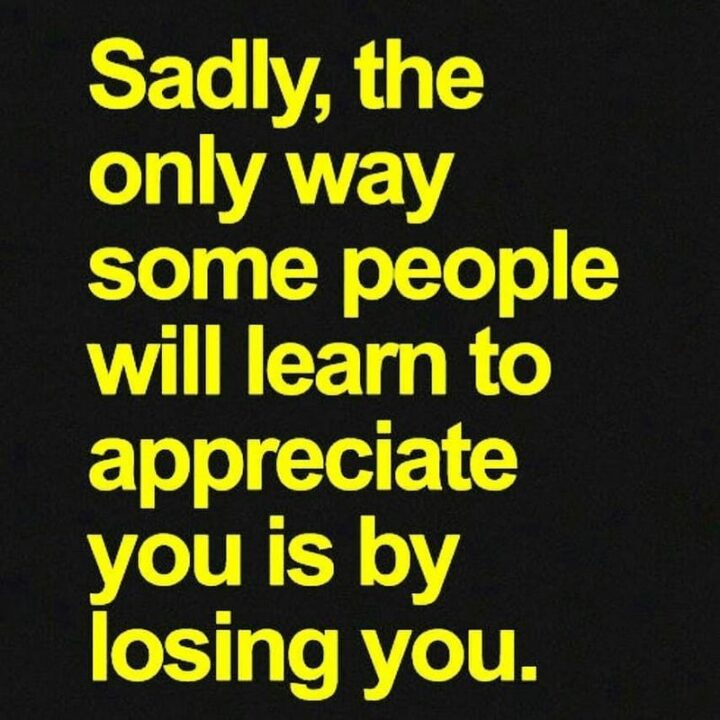 28) “Sadly, The Only Way Some People Will Learn To Appreciate You Is By Losing You.” – Anonymous