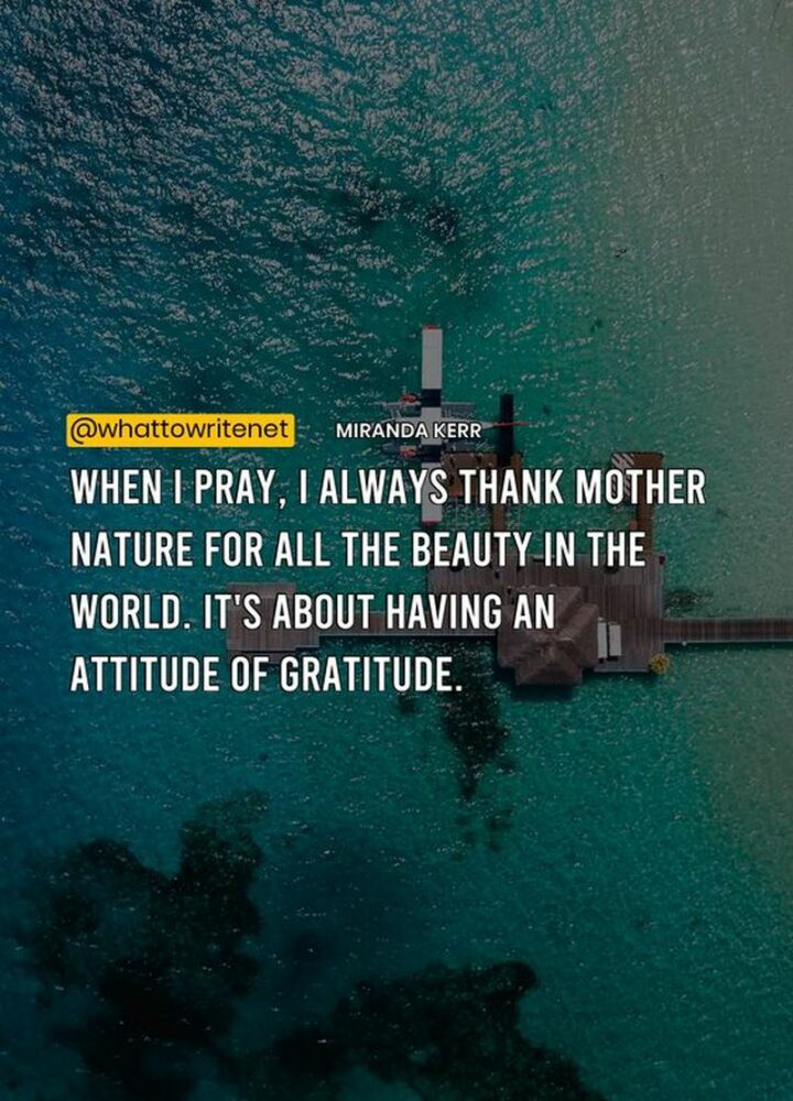 32) “When I pray, I always thank Mother Nature for all the beauty in the world. It’s about having an attitude of gratitude.” – Miranda Kerr