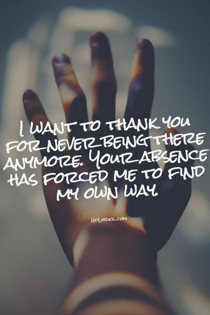 43) “I want to thank you for never being there anymore. Your absence has forced me to find my own way.” – Anonymous