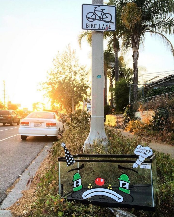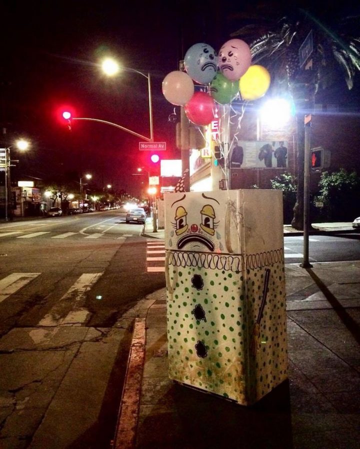 A talented but anonymous street artist by the name of Lonesome Town in Los Angeles cleverly paints sad clown faces on furniture he/she finds. Lonesome Town’s artwork brings a smile to people’s faces and shows just how heartbroken these pieces of furniture really are. They’ve brought a lot of joy and happiness to their owners over the years but now they’ve been kicked to the curb!