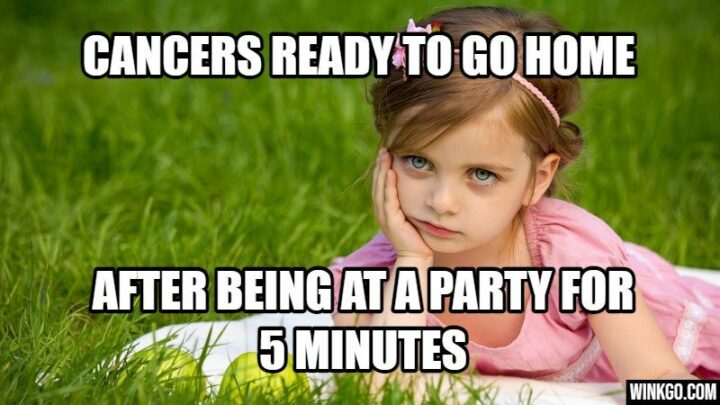 “Cancers ready to go home after being at a party for 5 minutes.”