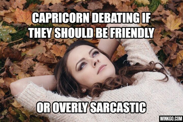 “Capricorn debating if they should be friendly or overly sarcastic.”