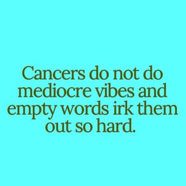 “Cancers do not do mediocre vibes and empty words irk them out so hard.”