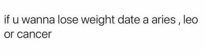 “If u wanna lose weight date an Aries, Leo, or Cancer.”