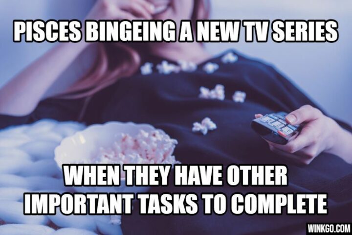 “Pisces bingeing a new TV series when they have other important tasks to complete.”