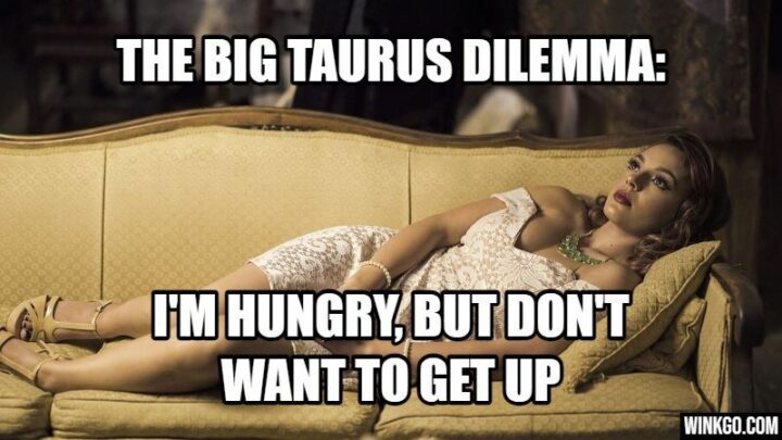 “The big Taurus dilemma: I’m hungry, but don’t want to get up.”