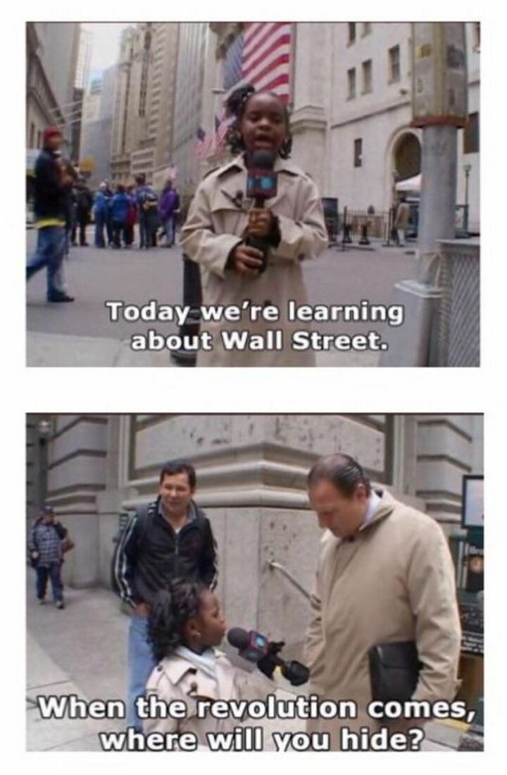 “Today we’re learning about Wall Street. When the revolution comes, where will you hide.”