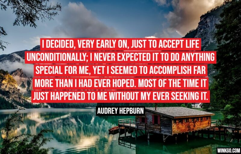 10) “I decided, very early on, just to accept life unconditionally; I never expected it to do anything special for me, yet I seemed to accomplish far more than I had ever hoped. Most of the time it just happened to me without my ever seeking it.” – Audrey Hepburn