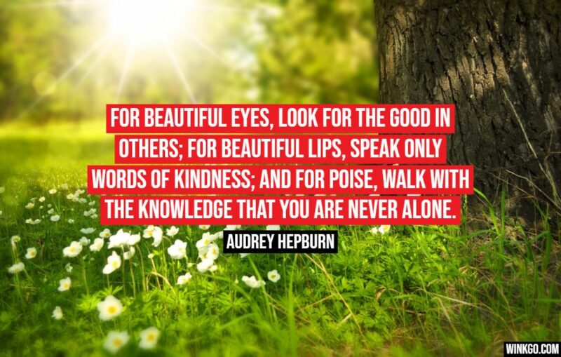 15) “For beautiful eyes, look for the good in others; for beautiful lips, speak only words of kindness; and for poise, walk with the knowledge that you are never alone.” – Audrey Hepburn