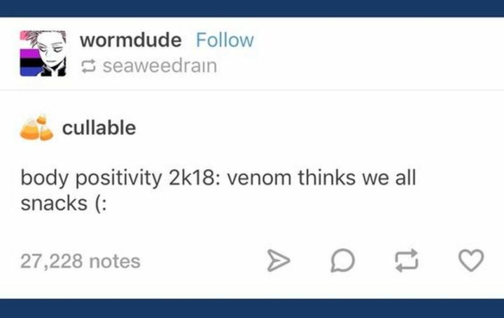 “Body positivity 2k18: Venom thinks we all snacks.”